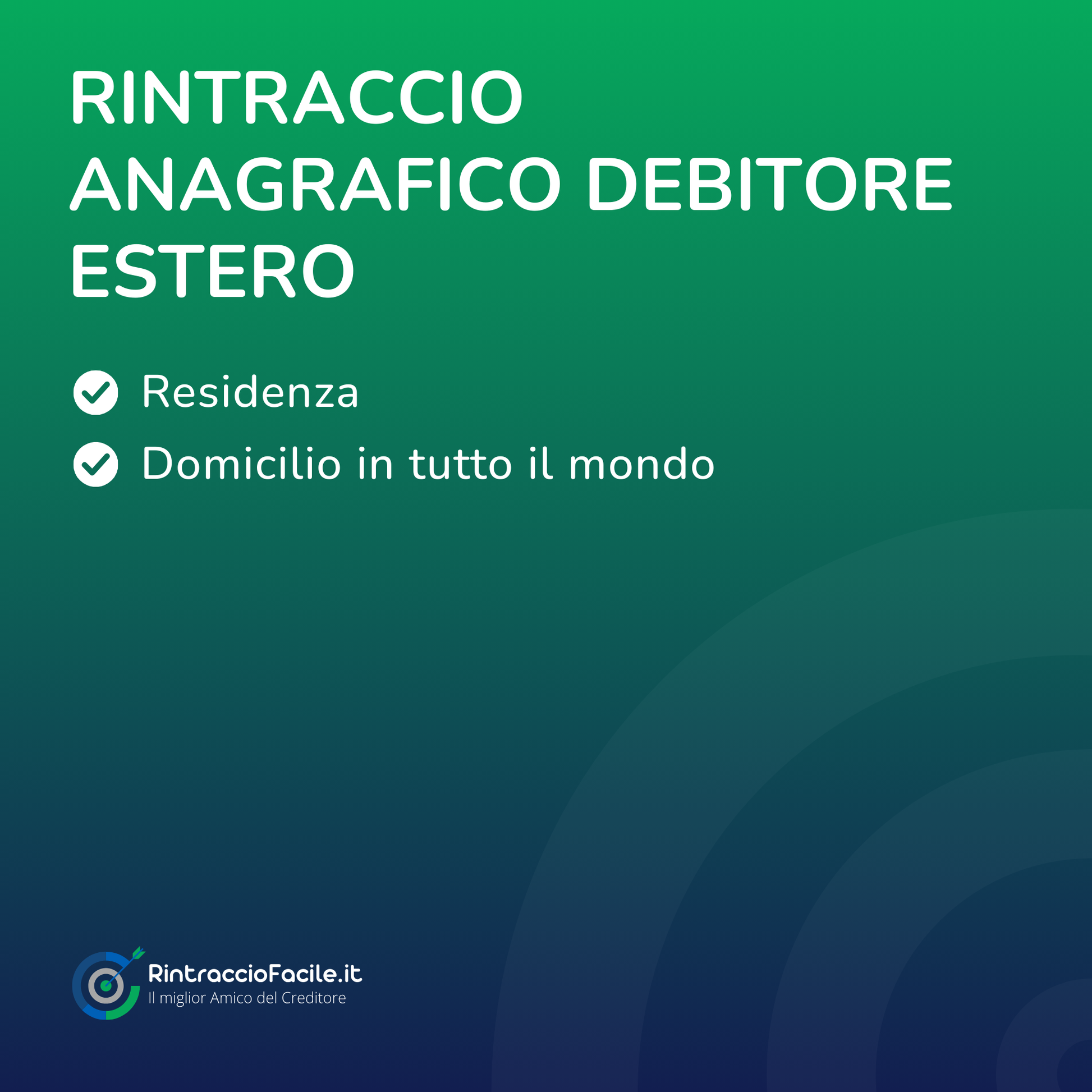 Rintraccio Anagrafico Debitore Estero è il report informativo esclusivo di rintracciofacile.it che permette di trovare in tutto il mondo un debitore.